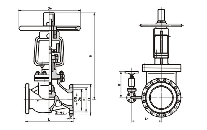 2、介質(zhì)流向:PN≥1.6MPa、DN≤100介質(zhì)由閥瓣下方流入閥瓣上方(即低進高出),DN≥125介質(zhì)由閥瓣卜方流入下方(高進低出)o對于DN≥125的閥門采用介質(zhì)高進低出的流向,一方面足內(nèi)旁通閥結(jié)構(gòu)上的需要,另一方面由于介質(zhì)壓力的作用使閥門的關(guān)閉力大大減小。